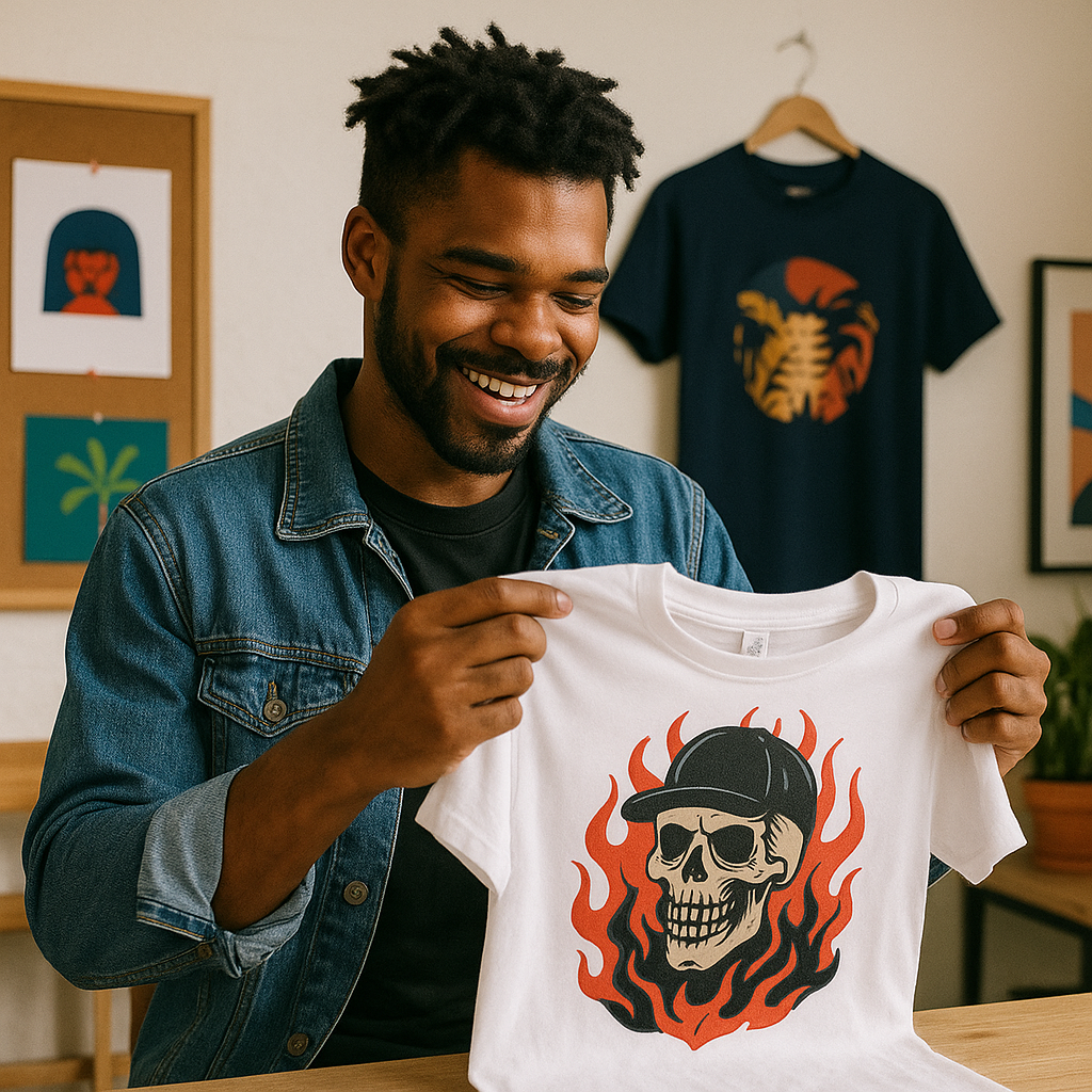 The AI-powered Merch Design App for Shopify Stores. Let your customers describe what they want — AI generates the design. You sell more. Simple.